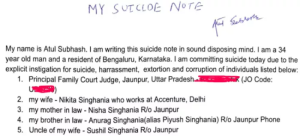 सुसाइड नोट में अतुल की दलीलें