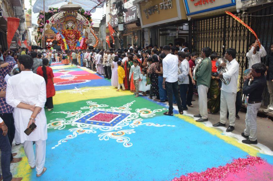 फूलों से सजी सड़क पर निकलीं नगर सेठानी