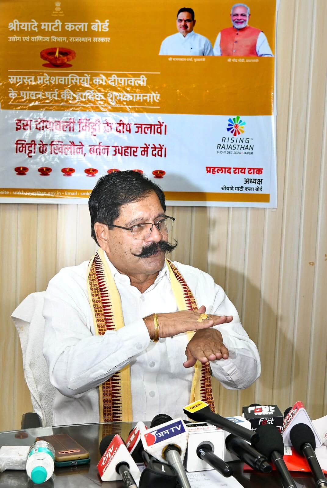 जयपुर, माटी कला बोर्ड के अध्यक्ष प्रहलाद राय टाक ने दीपावली के अवसर पर मिट्टी के दीयों, बर्तनों, और अन्य उत्पादों के उपयोग का ...