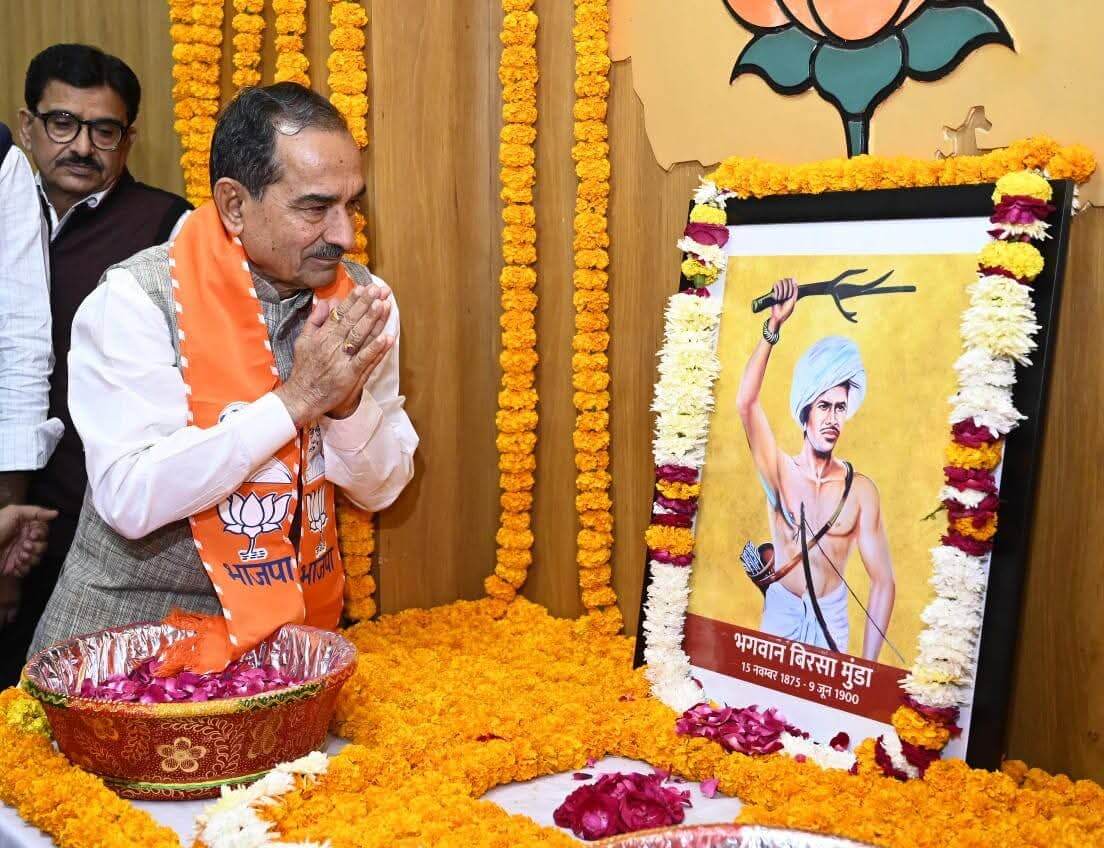 भगवान बिरसा मुंडा जयंती पर भाजपा प्रदेश मुख्यालय में श्रद्धांजलि कार्यक्रम, मदन राठौड़ ने कहा — “आदिवासी विकास के लिए प्रतिबद्ध है सरकार”