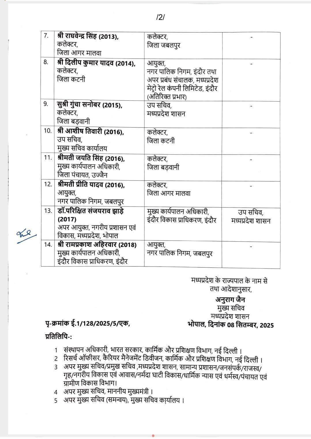 आशीष सिंह — उज्जैन के कमिश्नर के पद पर तैनात किए गए।
