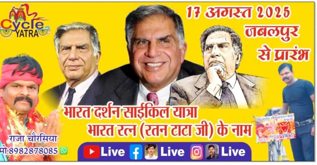 जबलपुर। संस्कारधानी जबलपुर के सुपुत्र और युवा समाजसेवी राजा चौरसिया ने भारत रत्न रतन टाटा जी को अपनी आत्मीय श्रद्धांजलि अर्पित करते हुए भारत यात्रा का संकल्प लिया है। इस ऐतिहासिक यात्रा की शुरुआत उन्होंने अपने नगर जबलपुर (संस्कारधानी) से करते हुए आज पावन ओंकारेश्वर धाम पहुंचकर की।
