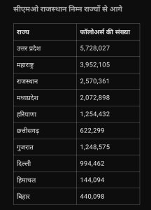 #### सीएमओ राजस्थान के फॉलोअर्स की अद्भुत बढ़ोतरी